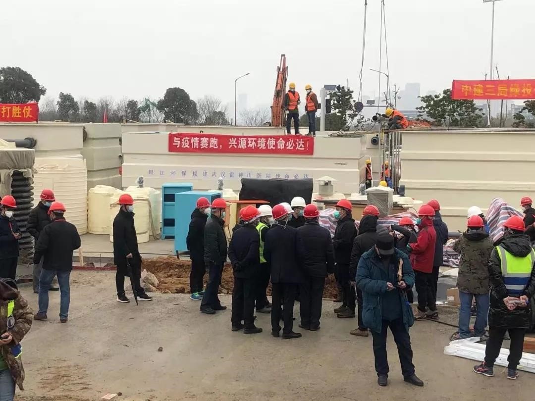興源環(huán)境武漢火神山醫(yī)院污水處理項(xiàng)目組緊急成立,分散天南海北的幾十名干部員工立刻取消休假,連夜投入工作。